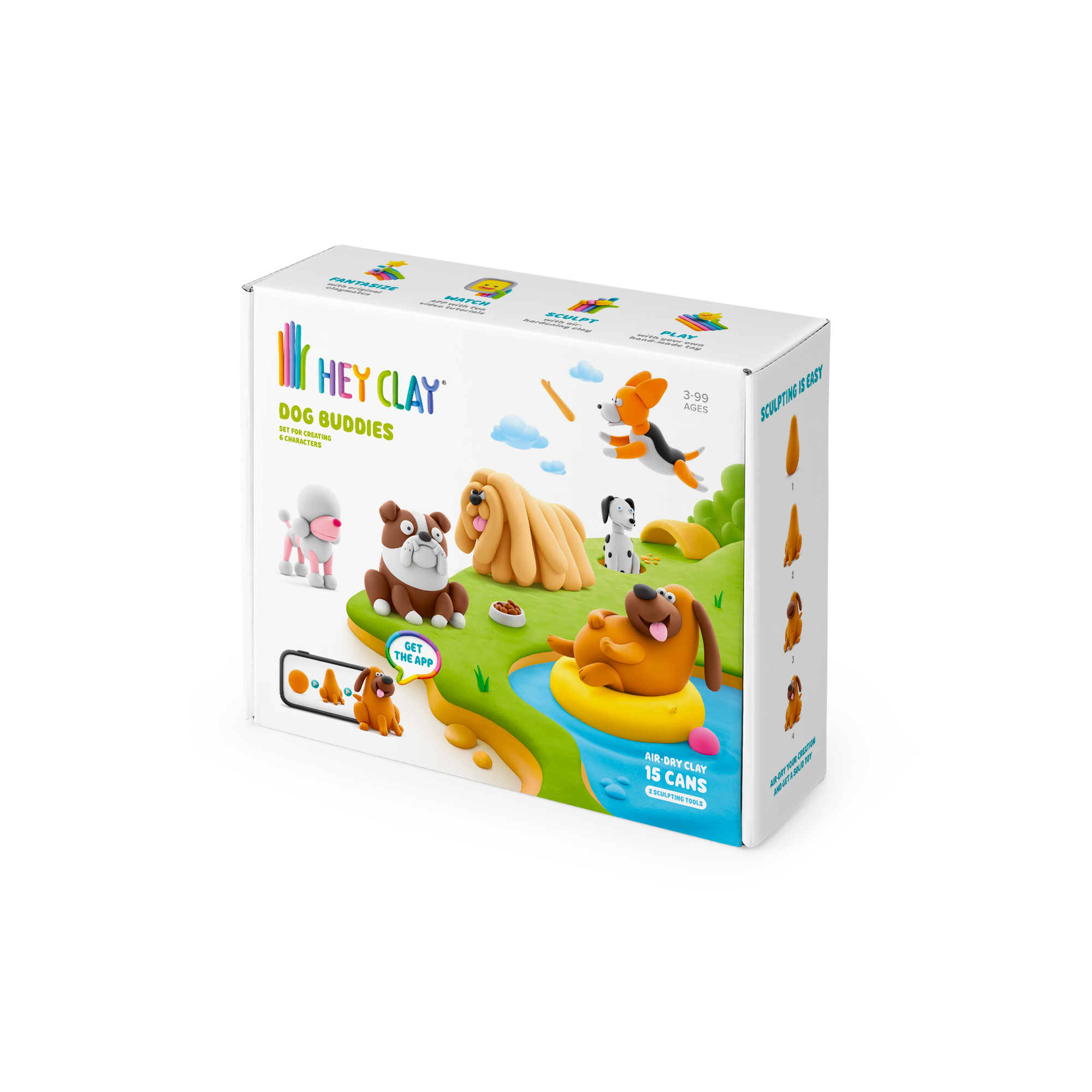 Lase loovusel lennata HEY CLAY voolimismassikomplektiga " Koerasõbrad "! See erksavärviline, mittetoksiline ja õhu käes kõvenev voolimismass sobib suurepäraselt lastele meisterdamiseks ja fantaasiarikkaks mänguks. Interaktiivse äpi juhendite abil saab luua kuus vahvat koerategelast, mis kuivavad üleöö tugevaks ja vastupidavaks. See on ideaalne loovmänguasi peenmotoorika arendamiseks ning pakub tundideks põnevat tegevust. Voolimismass on justkui plastiliin, kuid ei kleepu käte ega pindade külge. Suurepärane kingituseks!