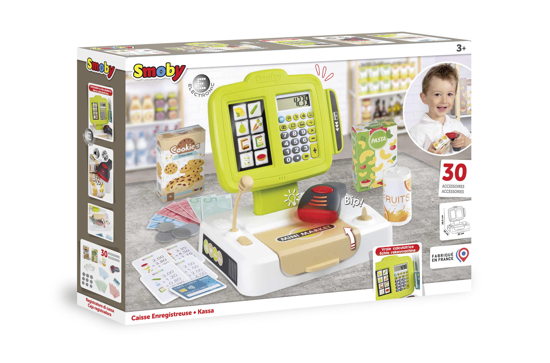 Komplekt koosneb kassasahtlist, päriselt töötavast kalkulaatorist ja mikrofonist.