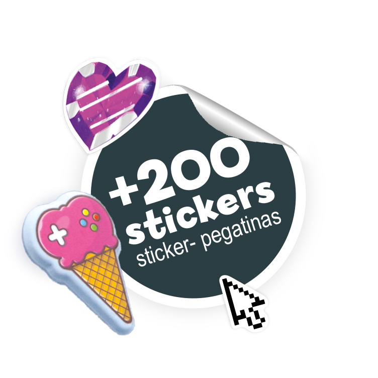 Komplekt sisaldab: 5 A5 kleepsulehte kokku 200+ kleepsuga, sh 3 värvilist lehte, 1 metallilise kontuuriga leht ja 1 pehmete 3D-kleepsude leht.