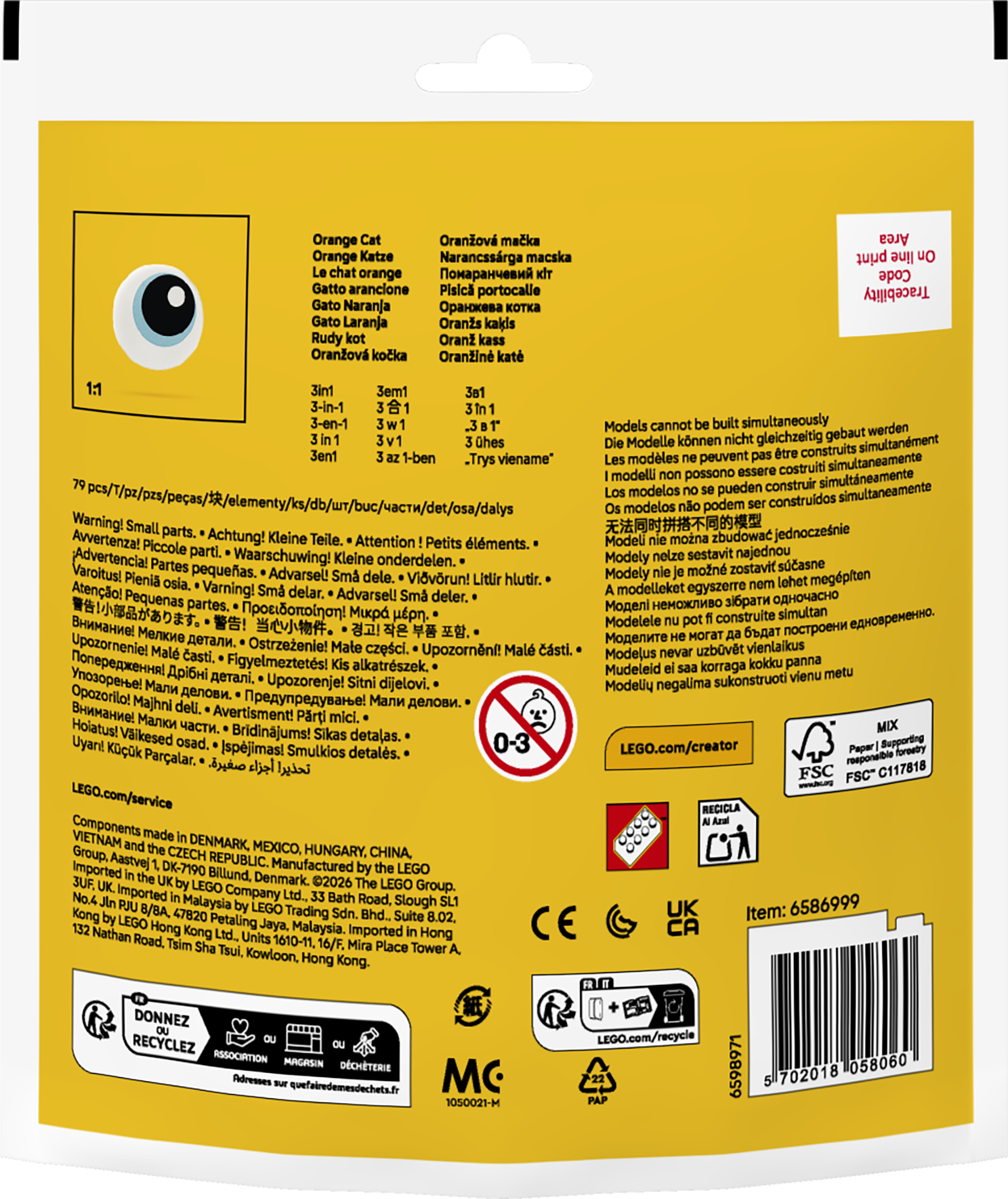 See armas kolm-ühes LEGO Creator mängukomplekt (30714) võimaldab loomafännidel ehitada kassi koos piimakausiga, enne kui nad ehitavad selle ümber krokodilliks, kes elab tiigis või öökulliks, kellel on pesa ja pesas kaks muna.