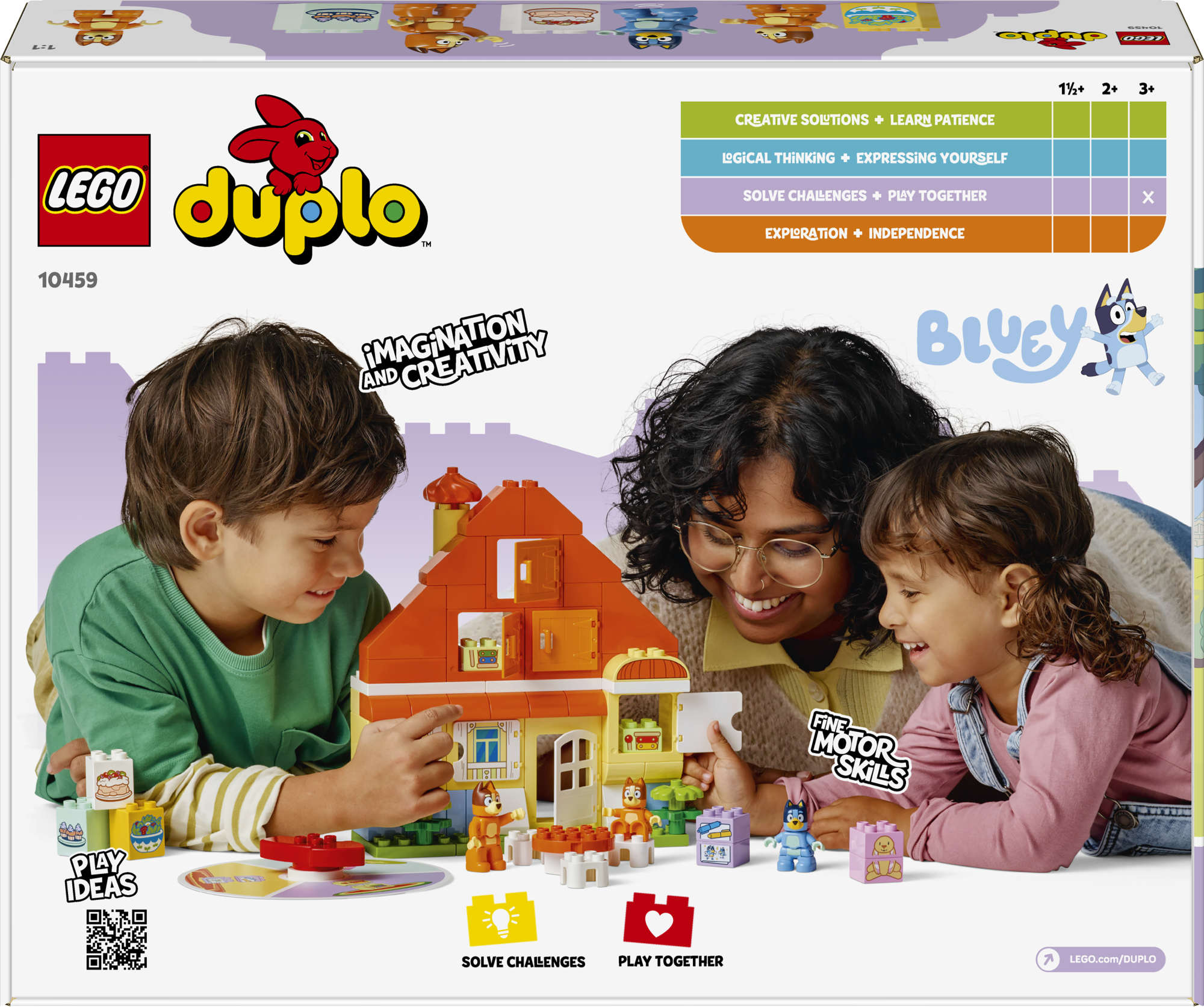 • Avasta rohkem Bluey lõbu – tutvu teiste LEGO® DUPLO® Bluey ja LEGO® Bluey loovmänguasjadega (müügil eraldi), sealhulgas eakohased komplektid väikelastele, koolieelikutele ning alates 4-aastastele lastele