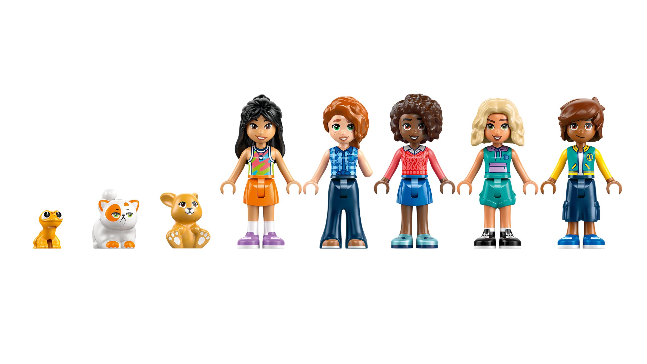 5 LEGO® FRIENDS TEGELAST – See rollimänguasi lastele sisaldab 5 mininukku – Autumn, Nova, Aliya, Leo ja Liann – ning lemmikloomi kass Churrot, jänest Honeyt ja gekot Popcorni