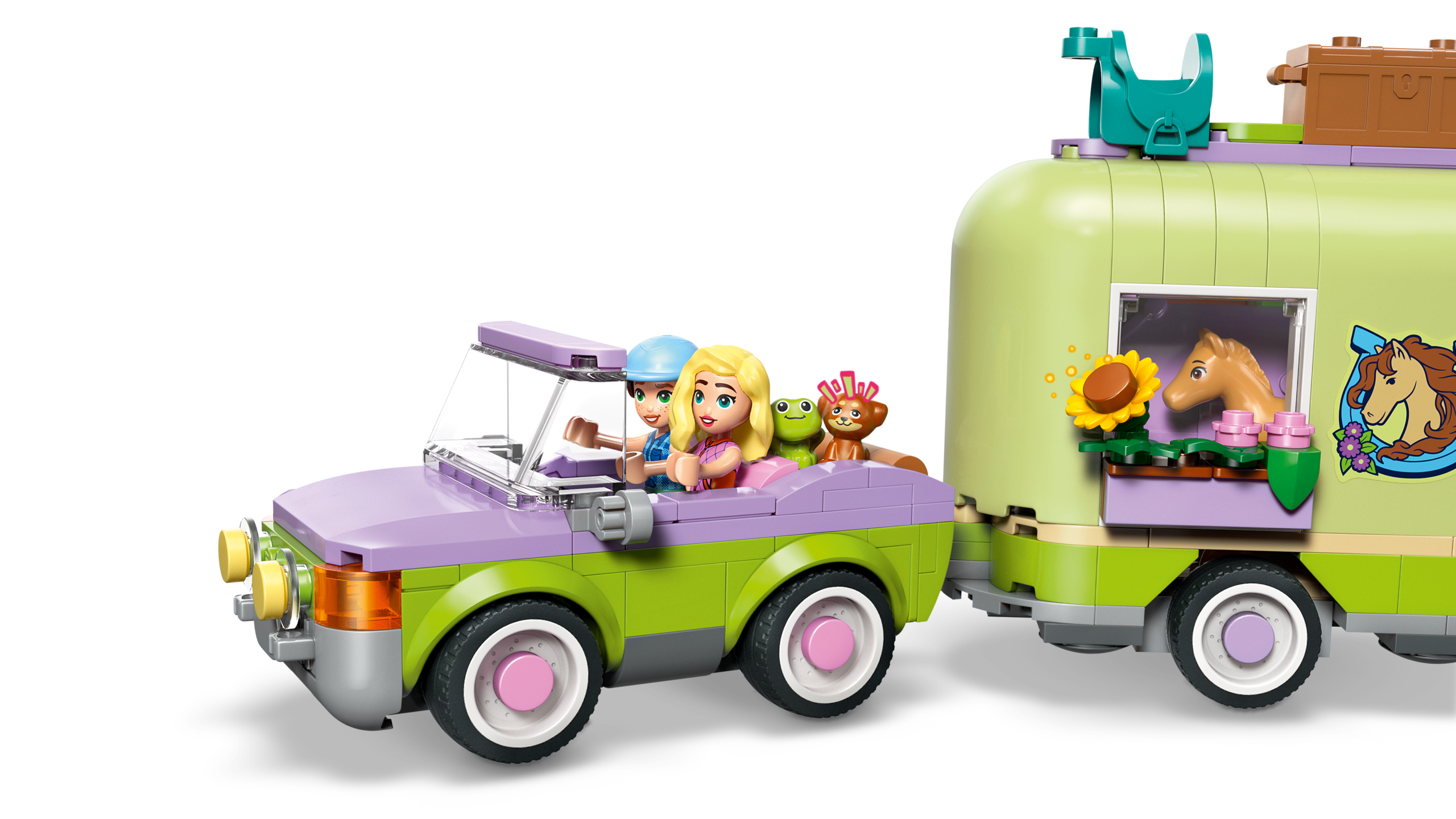 Lase 7-aastastel ja vanematel lastel nautida tundide kaupa loomade eest hoolitsemise rollimängu LEGO Friends hobuse ja varsa haagisega (42695).