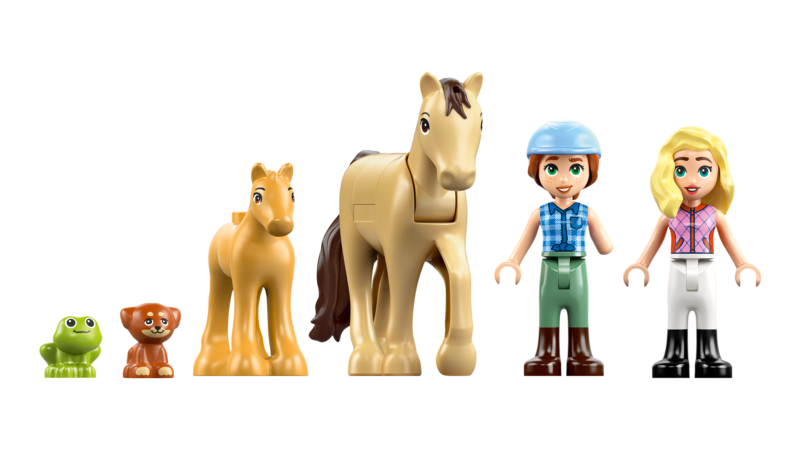 PALJU TARVIKUID – Selle LEGO® Friends komplekti tarvikute hulka kuuluvad ülehüppamiseks mõeldud aed, sadul, võileivad, korv, hari, hobuste jaoks porgandid ja 2 väikest lille hobuste teki kaunistamiseks