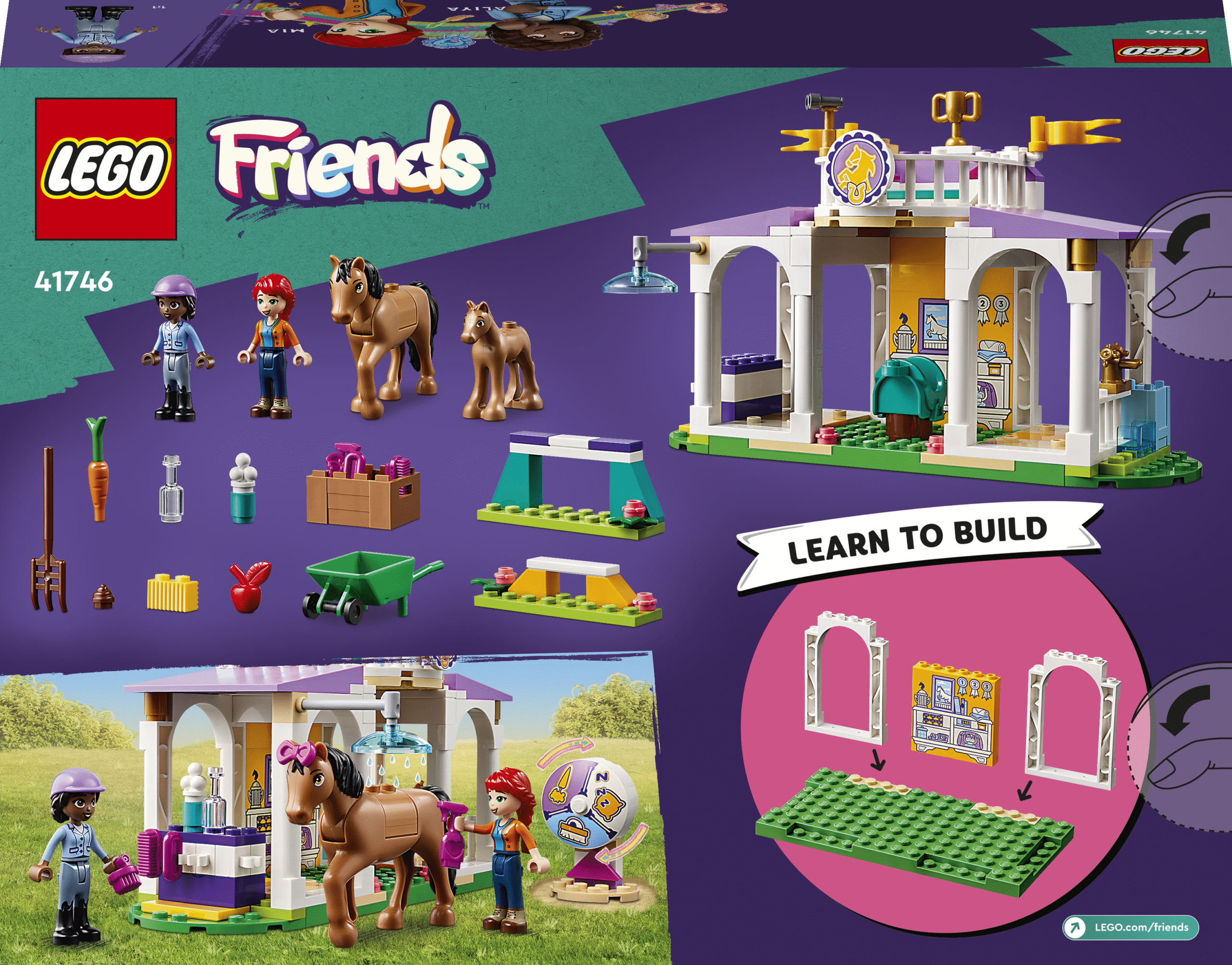 • Ehitus- ja mängukomplekt lastele alates 4. eluaastast – inspireeri lapsi avastama hobuste eest hoolitsemise maailma mängukomplektiga LEGO® Friends Hobuste koolitus (41746), mis sisaldab mänguhobusetalli