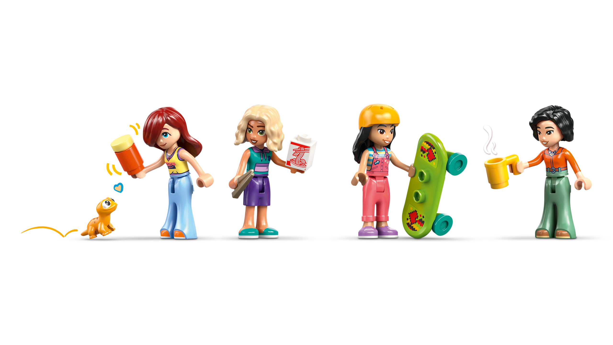 4 LEGO® FRIENDS TEGELAST – Selles rollimängukomplektis on mininukud Liann, Michelle, Paisley ja Nova ning lemmikloomad geko ja aksolotl koos oma terraariumite ja toiduga