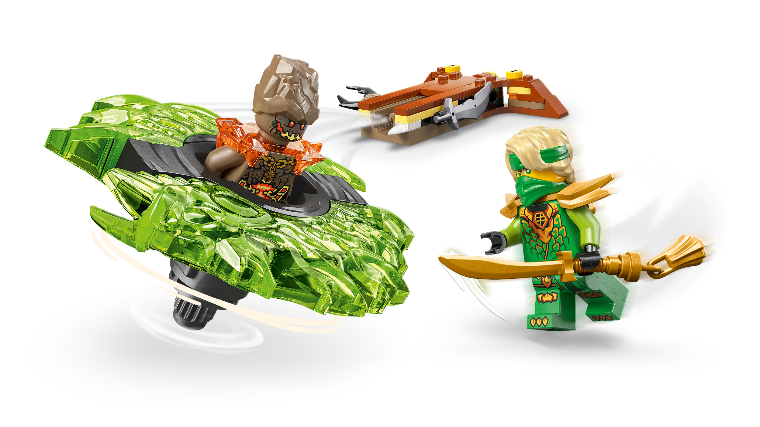 Lahingumänguasi – Vähemalt 6-aastased lapsed saavad komplektiga LEGO® NINJAGO Lloyd vs. Maakoletise spinner (71850) etendada telesarja „NINJAGO® Dragons Rising“ 4. hooajast pärit stseene