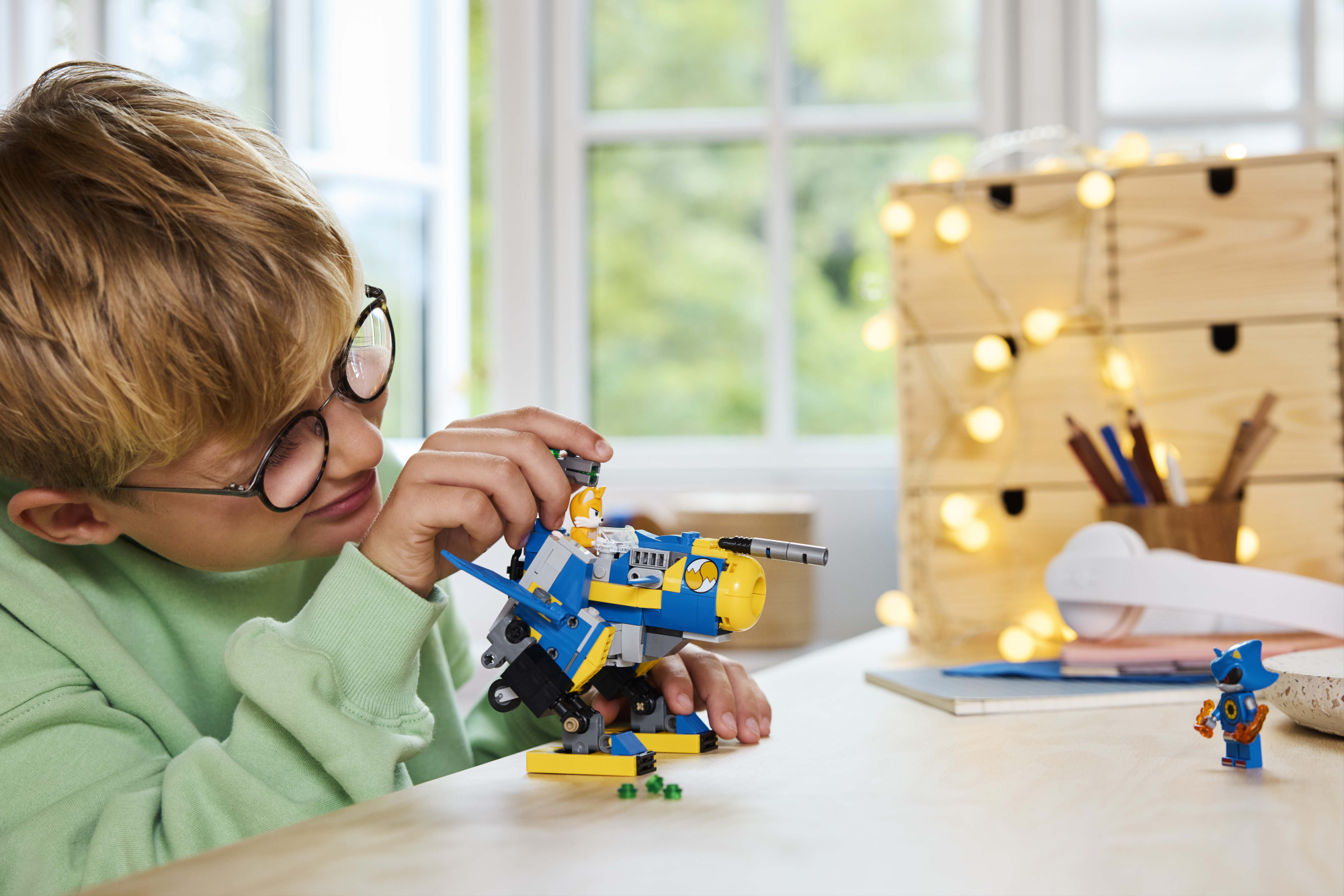 • Sonicu tegelaskujudega mänguasjad – Tailsi robotimänguasi sisaldab ka minifiguurikokpitti, robotitööriistade hoiuruumi ja liigendatud torni koos nupsukahuriga, mis aitavad teda lahingus Metal Sonicu eest kaitsta