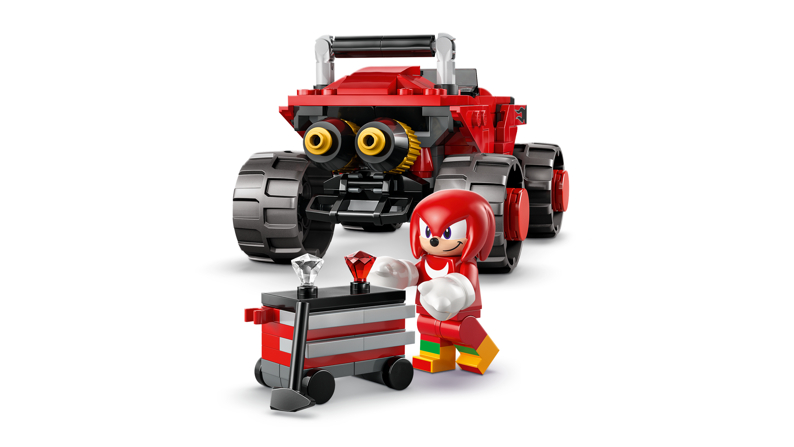 Silver the Hedgehog, Knuckles ja muu – Ehituskomplektis on esimene LEGO® Silveri minifiguur, Knucklesi minifiguur, tööriistakast, tööriistad, stardituled ning punane ja valge Chaos Emerald